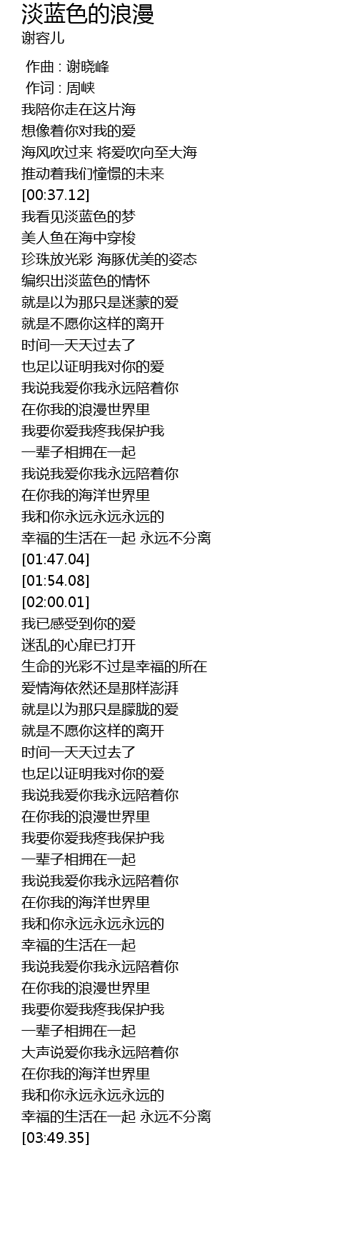 | [00:29.71] | 海风吹过来 将爱吹向至大海 |