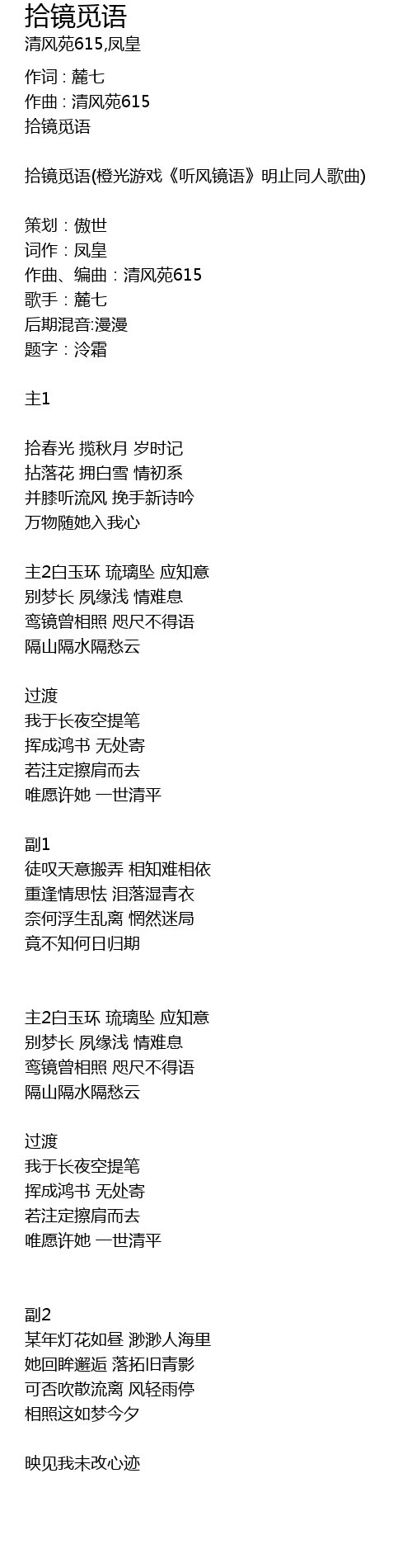 | 拾镜觅语(橙光游戏《听风镜语》明止同人歌曲) | |