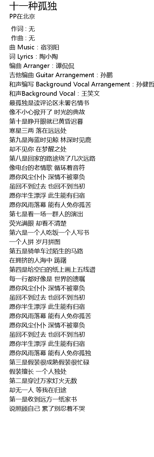 | [00:15.296] | 吉他编曲 Guitar Arrangement:孙鹏 |