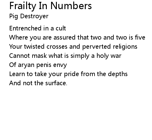 | Song | Frailty In Numbers |