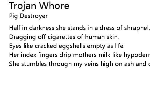 | She stumbles through my veins high on ash and dry semen fiending for love. |