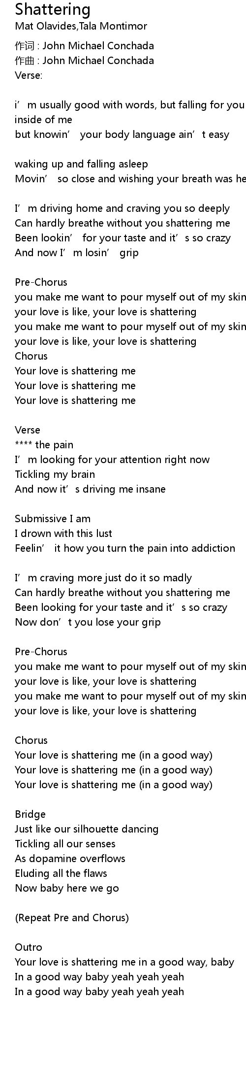 | Can hardly breathe without you shattering me | |