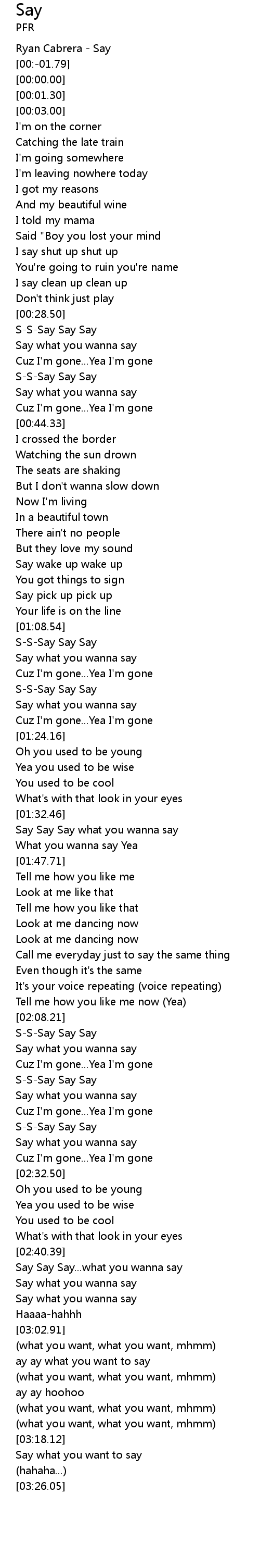 | [01:32.97] | Say Say Say what you wanna say |