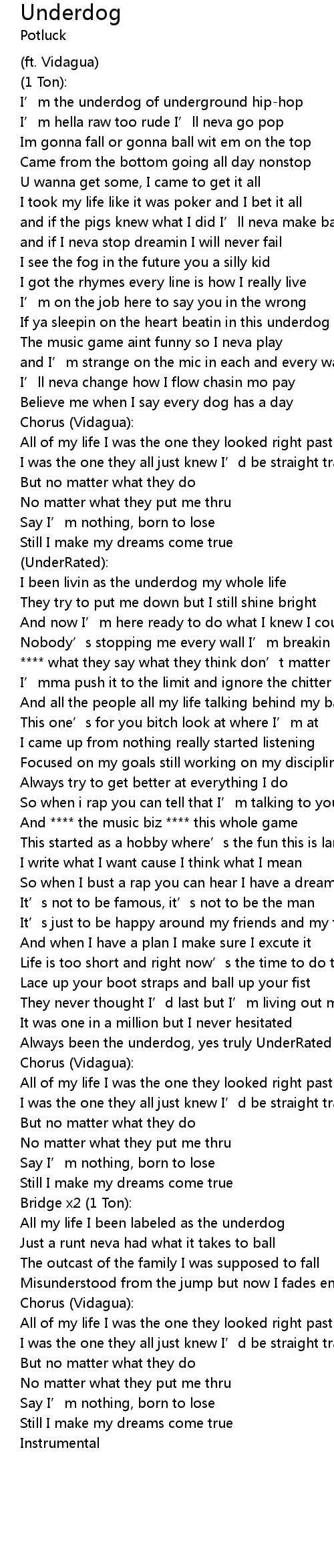 | All my life I been labeled as the underdog | |