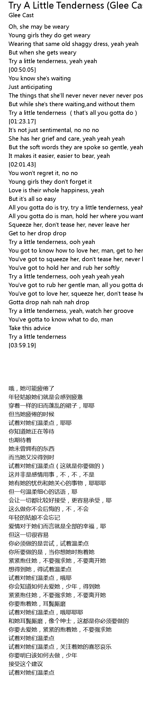 | [02:24.72] | All you gotta do is try, try a little tenderness, yeah |