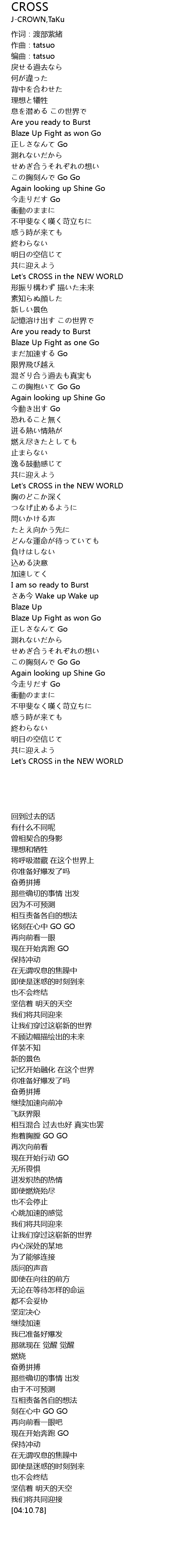 | [04:10.78] | Let's CROSS in the NEW WORLD |