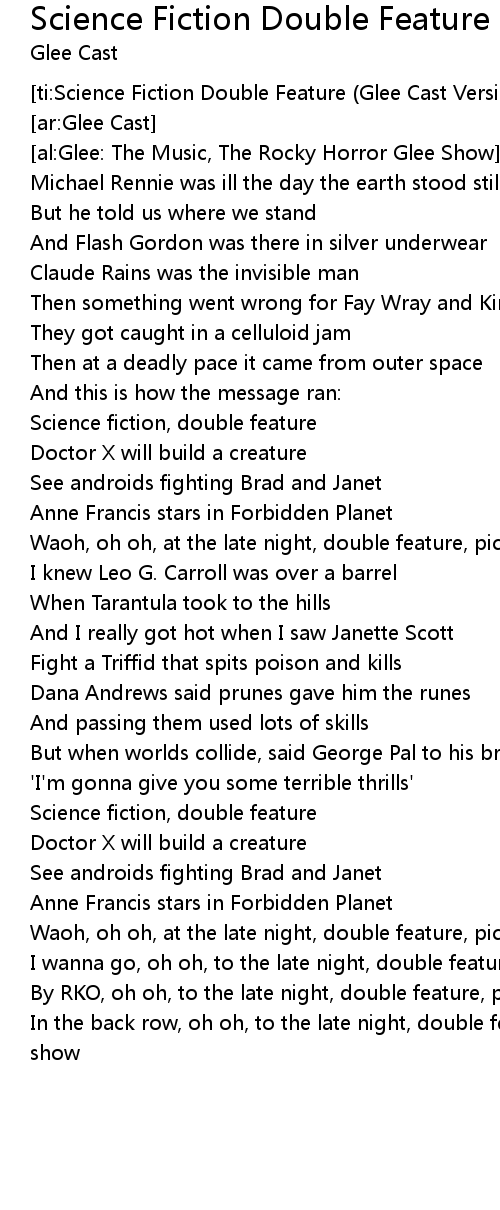 [ti:Science Fiction Double Feature (Glee Cast Version)] |