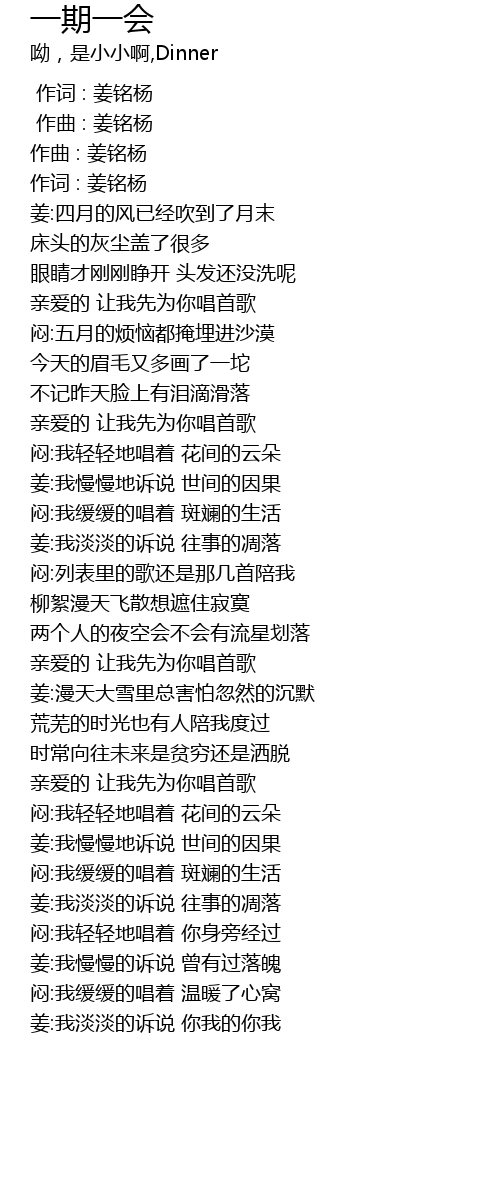 | [00:08.438] | 作词 : 姜铭杨 |