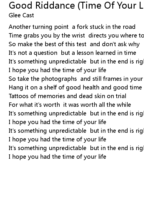 I hope you had the time of your life |