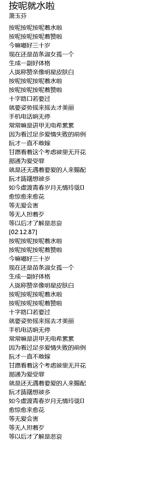 | [02:40.22] | 按呢按呢按呢着水啦 |
