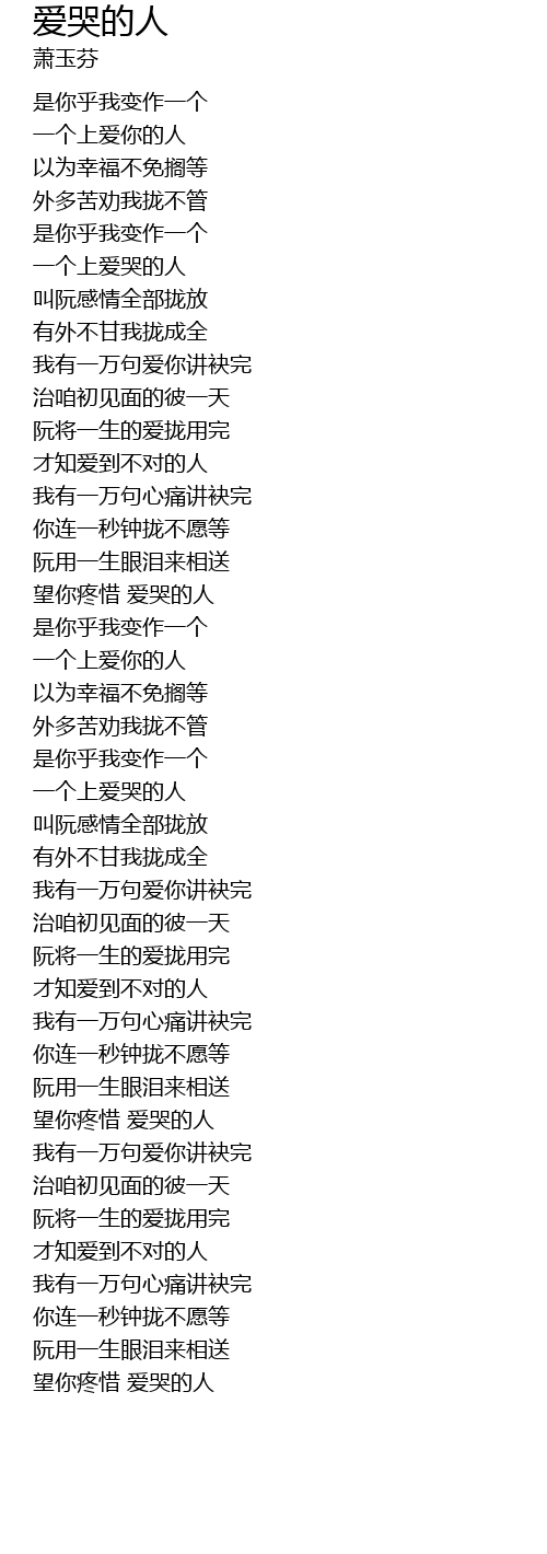 | [00:43.73] | yí gè shàng ài kū de rén |