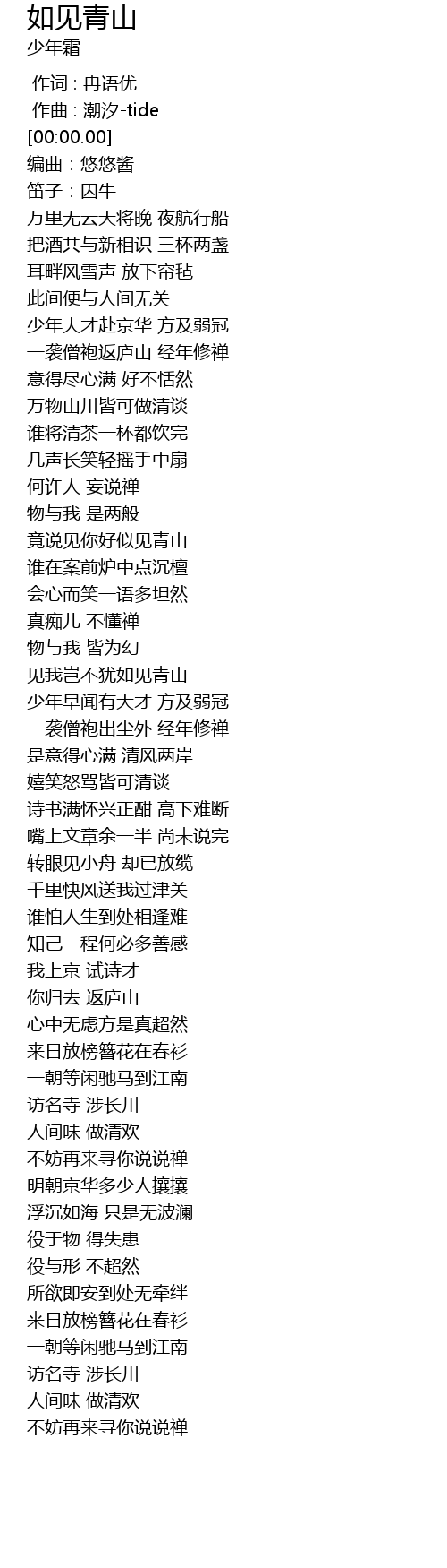 | [00:37.721] | 一袭僧袍返庐山 经年修禅 |