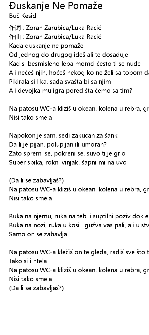 | 作词 : Zoran Zarubica/Luka Racić | |