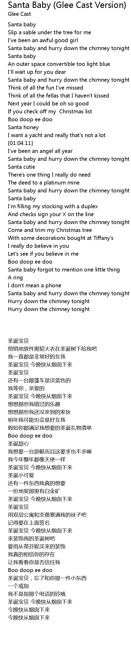 [01:41.46] Santa baby and hurry down the chimney tonight