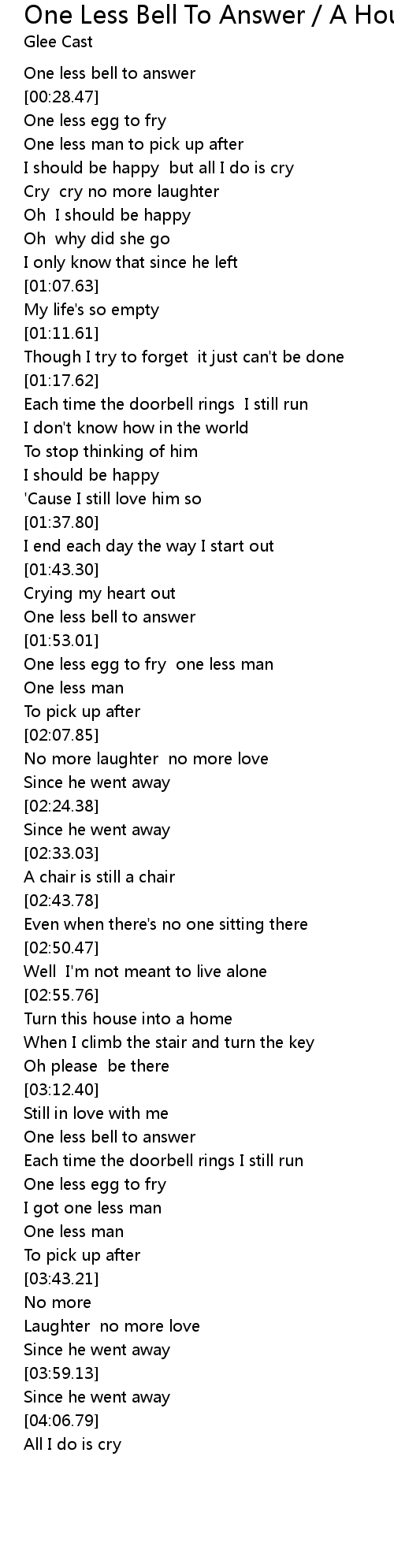 One Less Bell To Answer / A House Is Not A Home (Glee Cast Version featuring Kristin Chenoweth) Lyrics