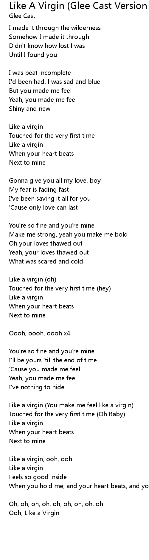 Like A Virgin (Glee Cast Version featuring Jonathan Groff) Lyrics