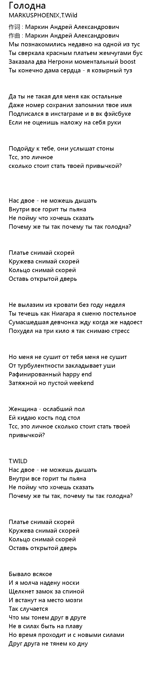 Почему же ты так, почему ты так голодна? |