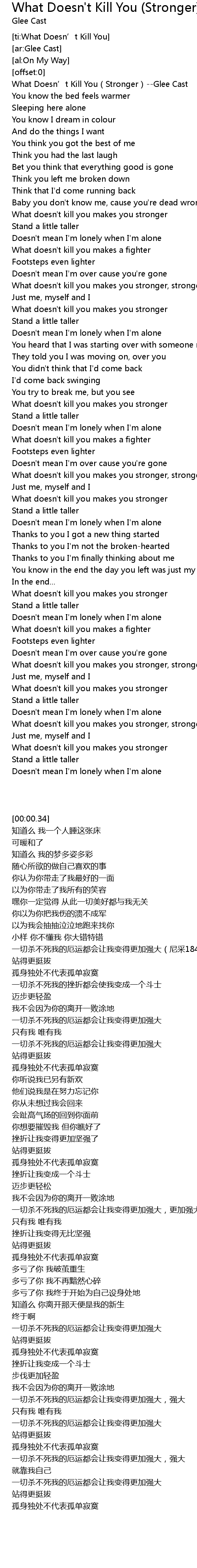 | [00:00.34] | What Doesn' t Kill You Stronger Glee Cast |