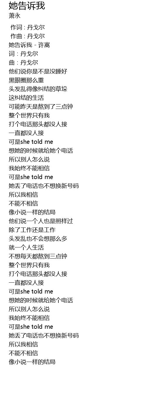 | [00:01.35] | 她告诉我 - 许嵩 |