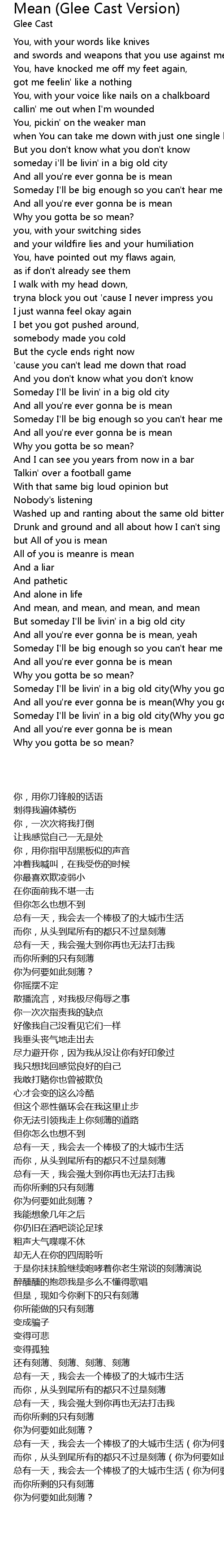 And all you're ever gonna be is mean(Why you gotta be so mean?) |