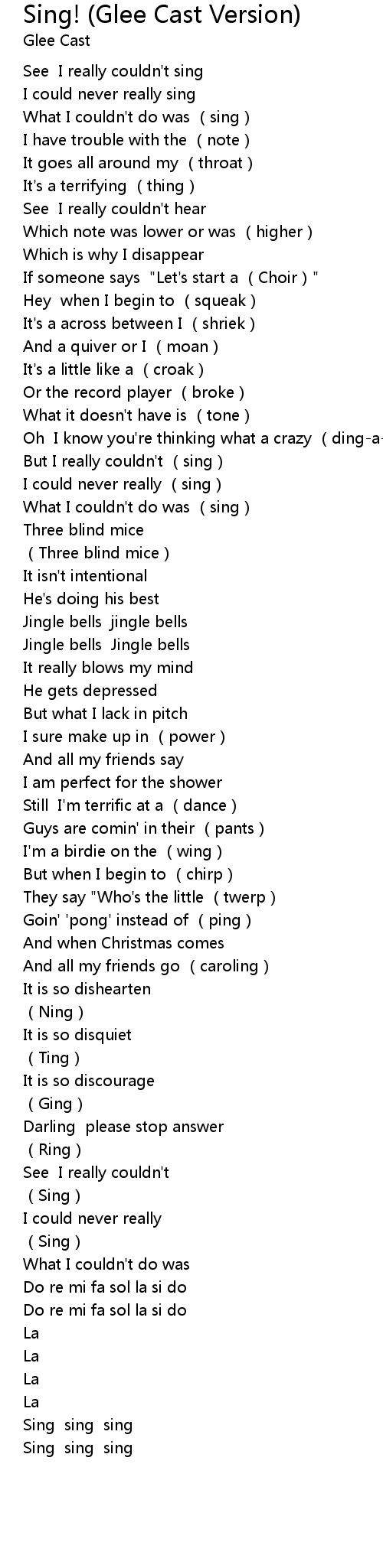 | [00:00.79] | See I really couldn' t sing |