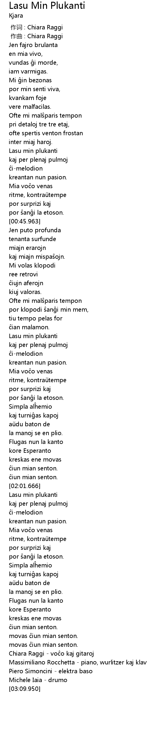 | [03:07.233] | Chiara Raggi - voĉo kaj gitaroj |