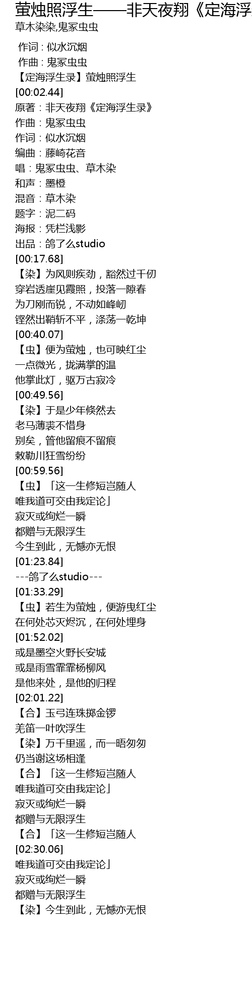 | [00:03.48] | 原著:非天夜翔《定海浮生录》 |