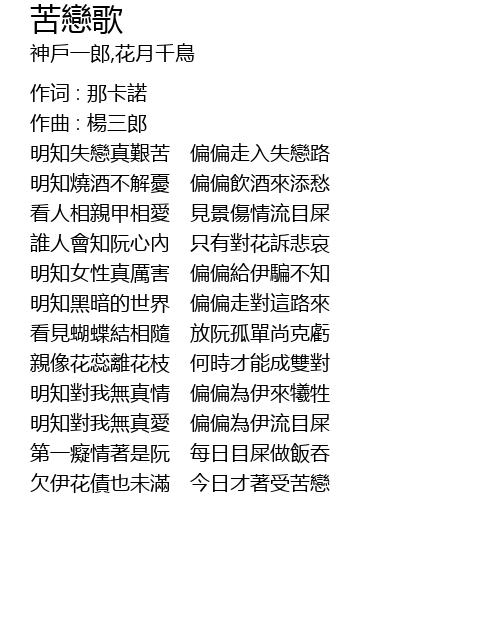 | 欠伊花債也未滿 今日才著受苦戀 |