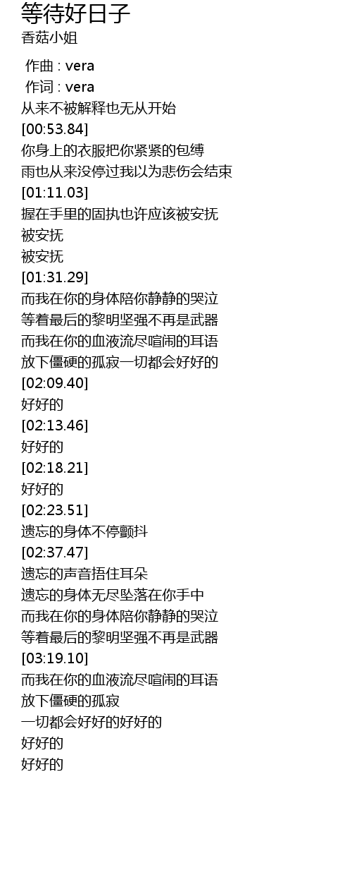 | [00:01.00] | 作词 : vera |