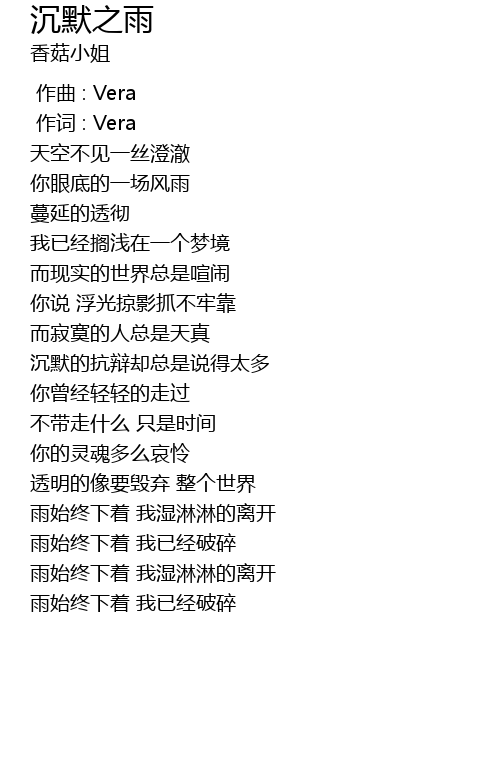 | [03:29.950] | 雨始终下着 我已经破碎 |