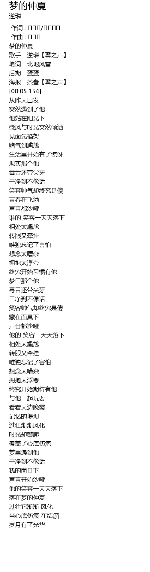 | [00:01.155] | 歌手:逆璘【翼之声】 |