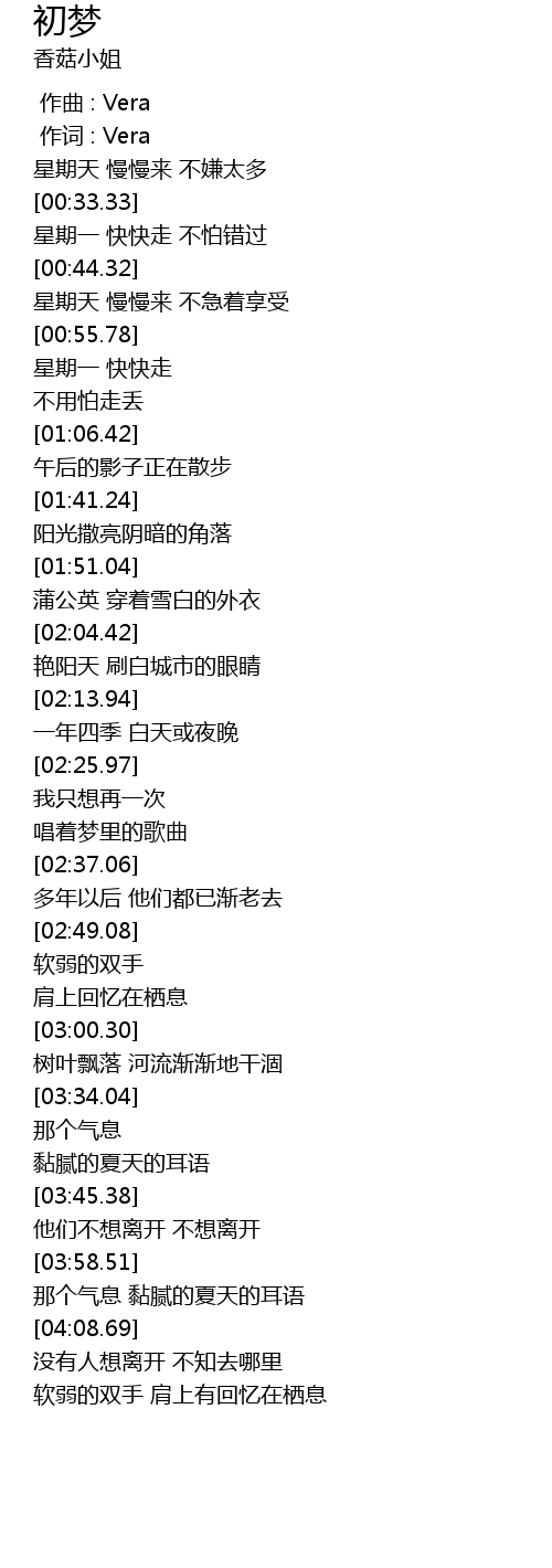 | [00:35.72] | 星期一 快快走 不怕错过 |