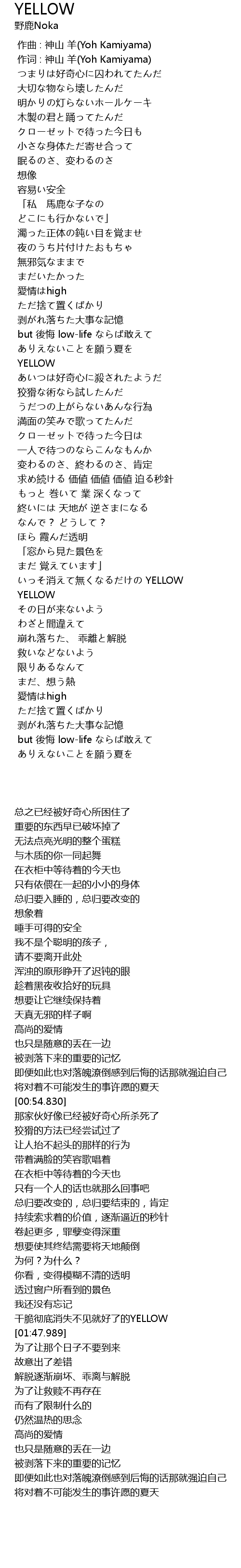 | [01:39.599] | いっそ消えて無くなるだけの YELLOW |