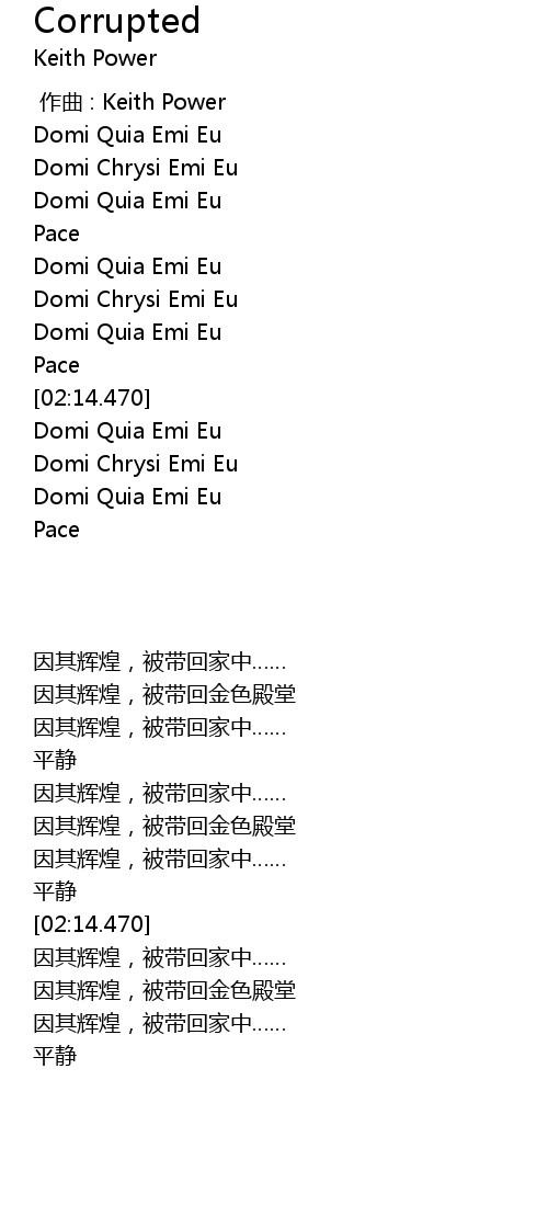 | [00:00.000] | 作曲 : Keith Power |