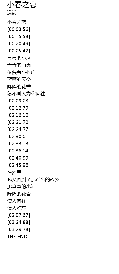 | [00:00.00] | xiǎo chūn zhī liàn |