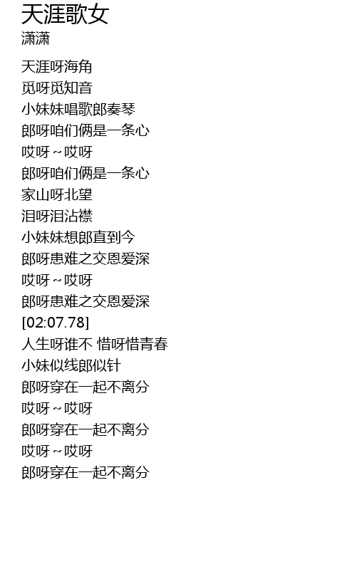 | [00:17.14] | tiān yá ya hǎi jiǎo |