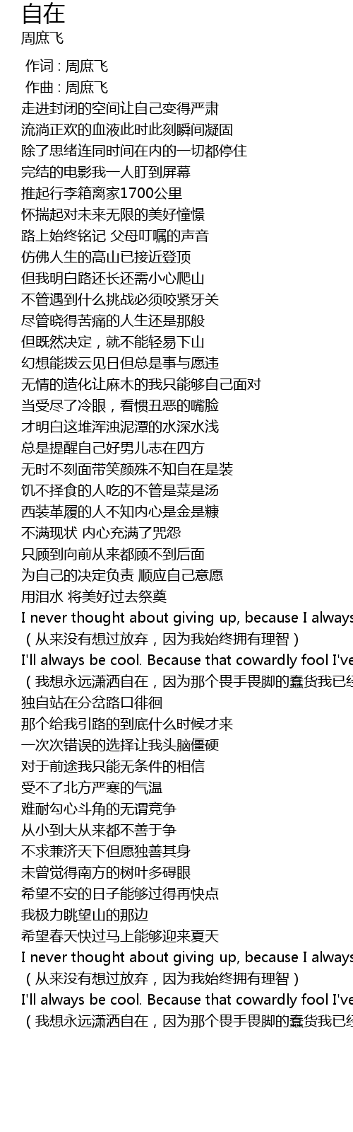 | [00:00.000] | 作词 : 周庶飞 |