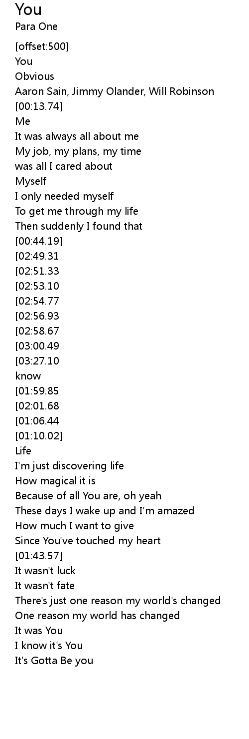 | [02:05.05][01:06.44] | You |
