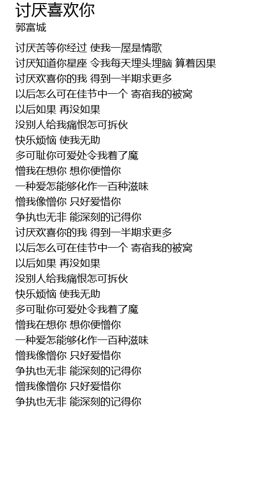 | [01:43.35] | 憎我像憎你 只好爱惜你 |