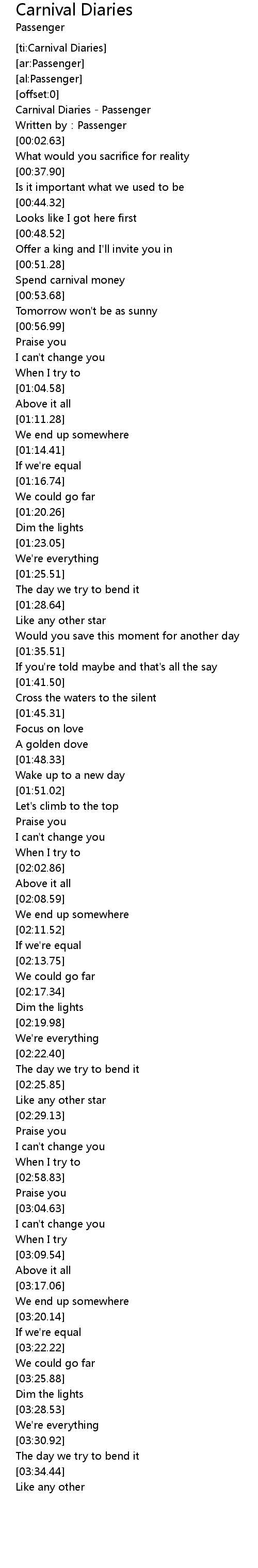 | [00:00.78] | Carnival Diaries - Passenger |