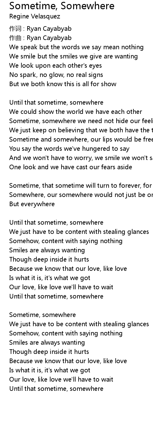 | Until that sometime, somewhere |