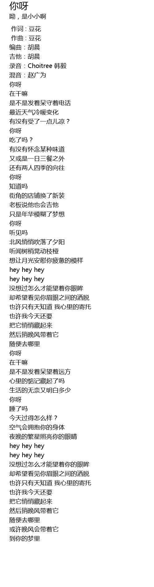 | [00:03.436] | 吉他:胡晨 |