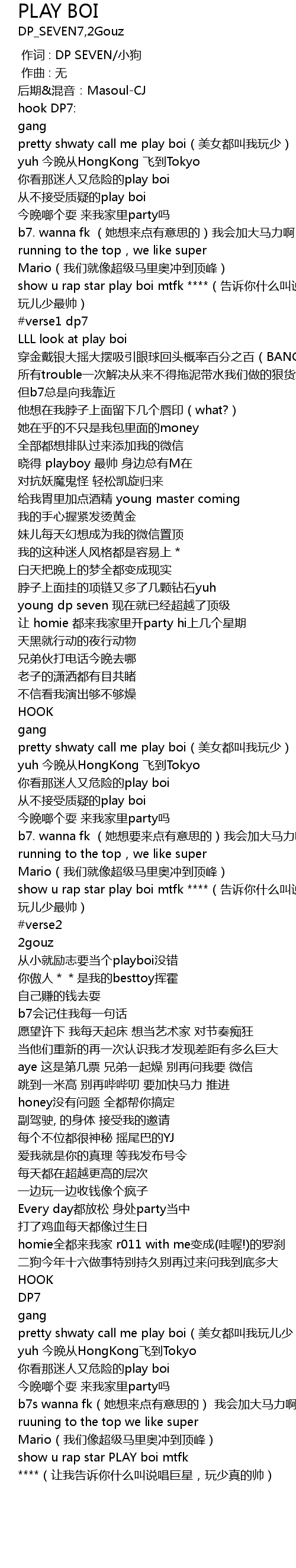| [03:24.223] | show u rap star PLAY boi mtfk ****(让我告诉你什么叫说唱巨星,玩少真的帅) |