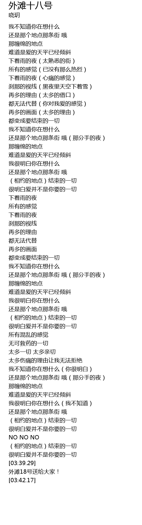 | [03:41.06] | 外滩18号送给大家! |