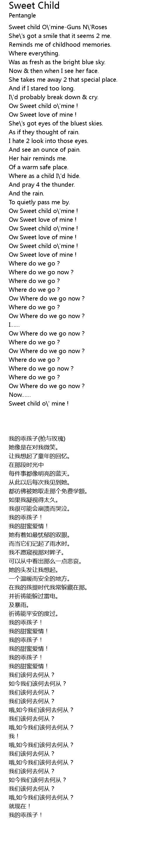 | [02:17.530] | Ow Sweet child o' mine ! |