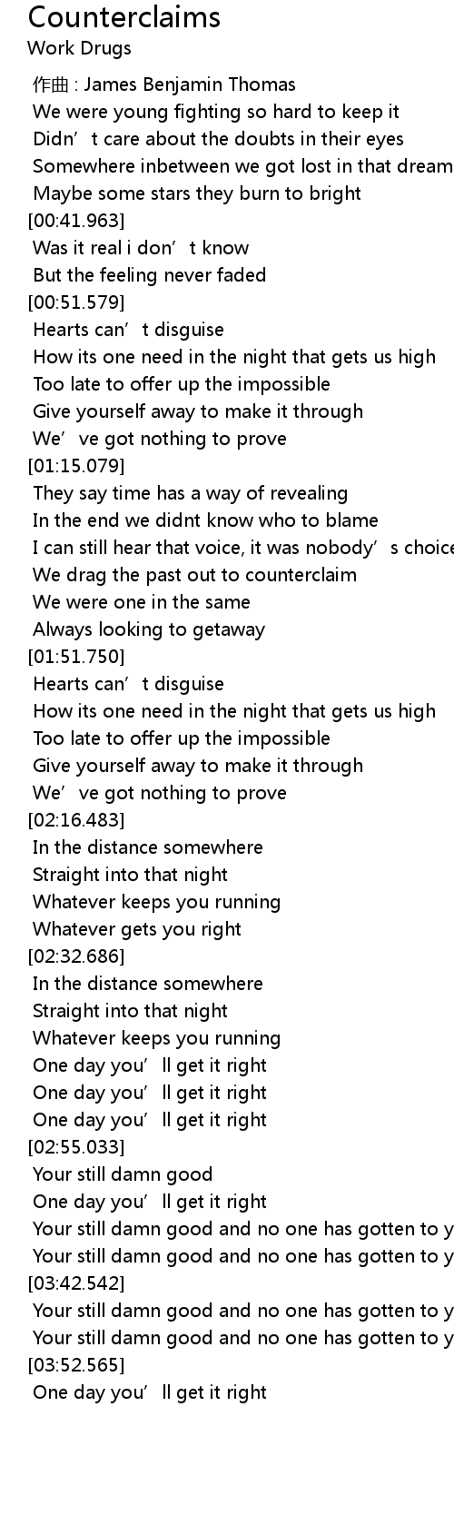 | [01:38.627] | We drag the past out to counterclaim |