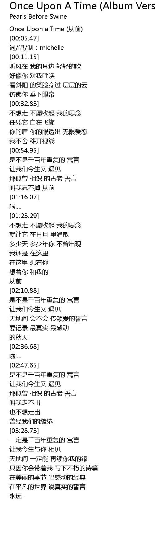 | [00:03.93] | Once Upon a Time cong qian |
