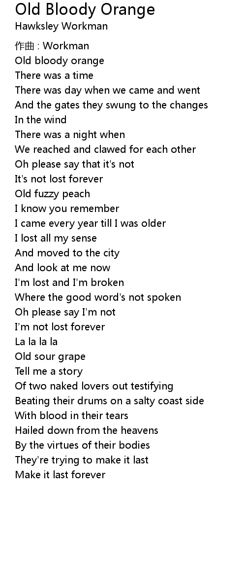 | Song | Old Bloody Orange |