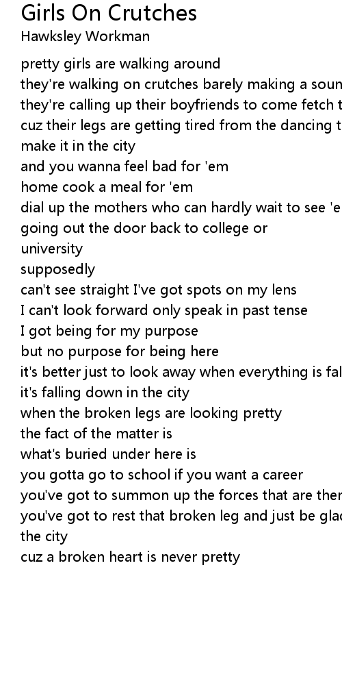 you've got to rest that broken leg and just be glad it's not a broken heart in the city |