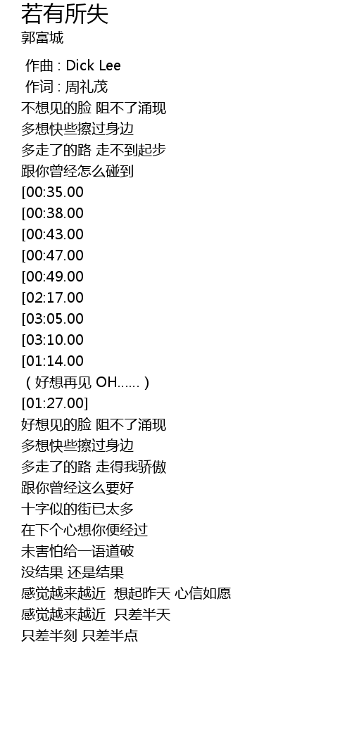 | [02:07.00][00:49.00] | 何以你远去 未说不 若有所失 |
